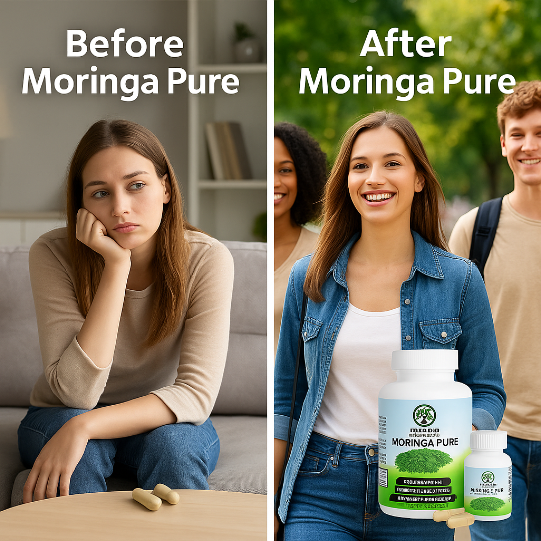 Imagine going from feeling bored and exhausted at home to confidently enjoying life with friends, full of energy and vitality. Moringa Pure supports your body naturally, helping you feel balanced, refreshed, and ready to conquer your goals.