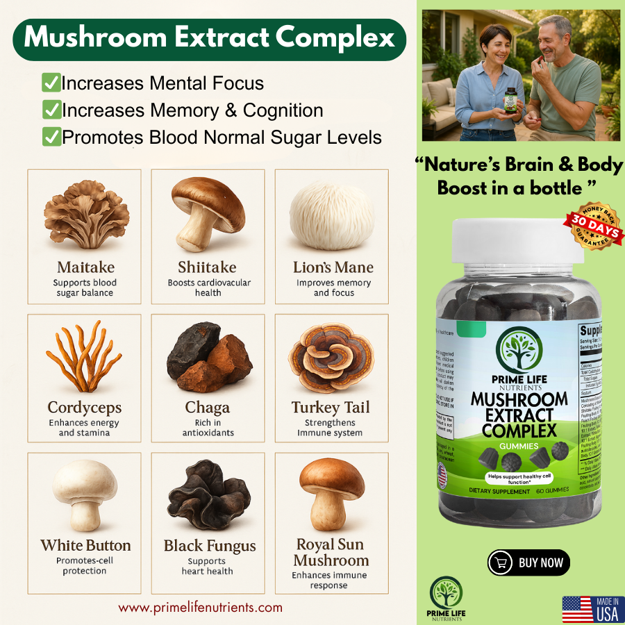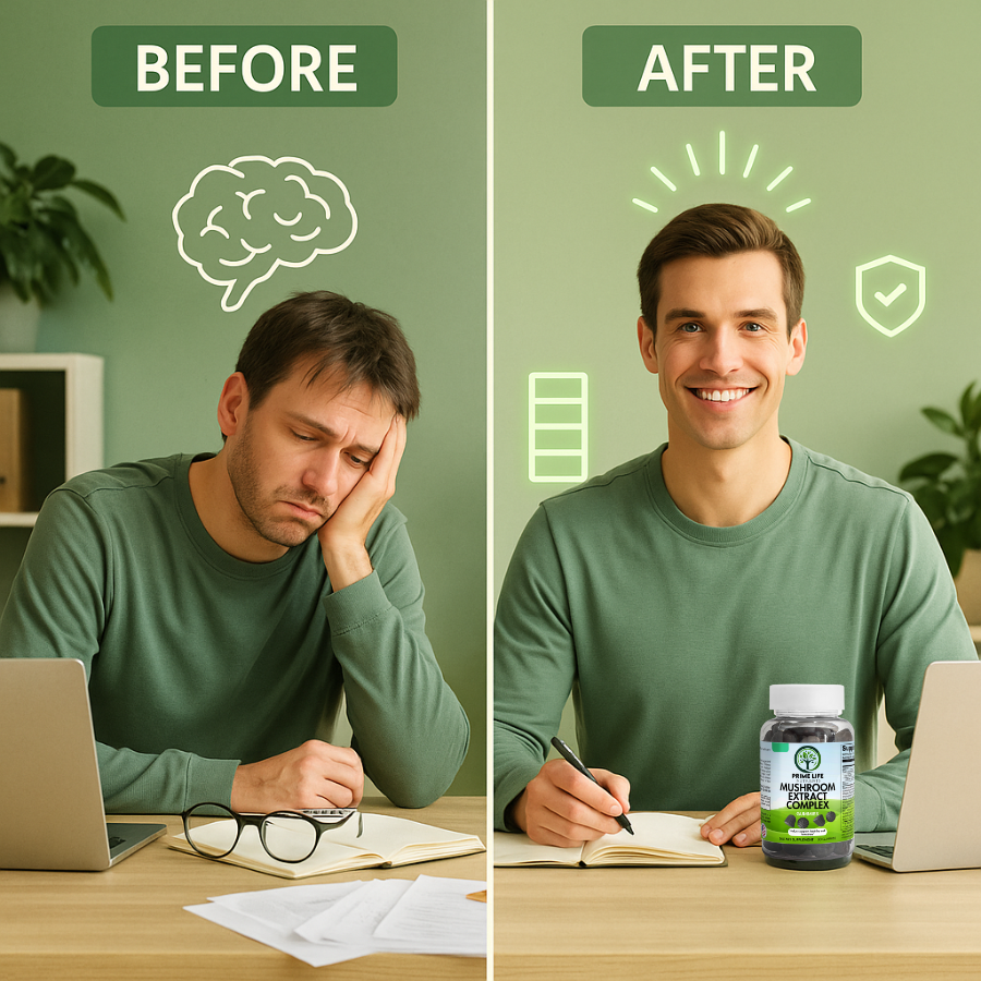 After just days of taking Prime Life Nutrients' Mushroom Extract Complex, everything changes. You feel refreshed, alert, and ready to tackle your day with confidence. Brain function improves, memory strengthens, and your mood lifts naturally β€” all without stimulants.